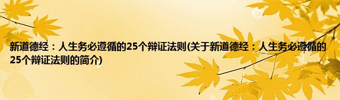 本文关于新道德经:人生务必遵循的25个辩证法则的简介就讲解完毕,希望对大家有所帮助。