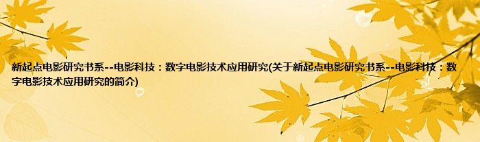 本文关于新起点电影研究书系--电影科技:数字电影技术应用研究的简介就讲解完毕,希望对大家有所帮助。