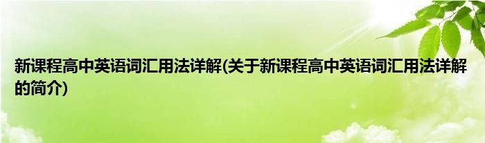 新课程高中英语词汇用法详解(关于新课程高中英语词汇用法详解的简介)