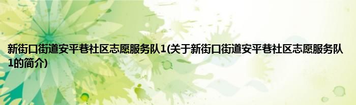 本文关于新街口街道安平巷社区志愿服务队1的简介就讲解完毕,希望对大家有所帮助。