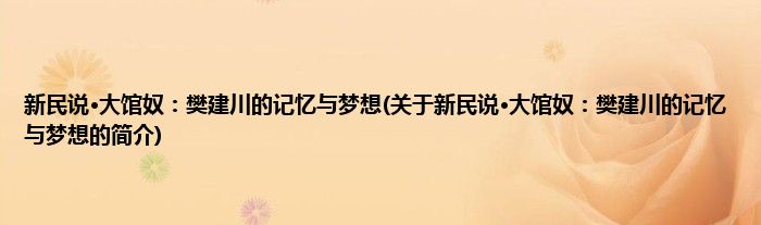 本文关于新民说·大馆奴:樊建川的记忆与梦想的简介就讲解完毕,希望对大家有所帮助。
