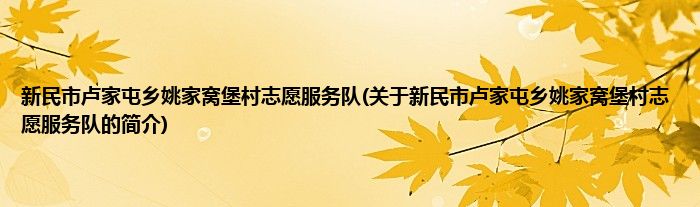 本文关于新民市卢家屯乡姚家窝堡村志愿服务队的简介就讲解完毕,希望对大家有所帮助。