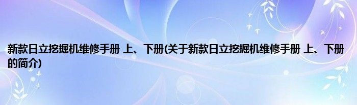 本文关于新款日立挖掘机维修手册 上、下册的简介就讲解完毕,希望对大家有所帮助。