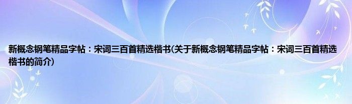 1、 《新概念钢笔精品字帖:宋词三百首精选楷书》是2001-11-01上海交通大学出版社出版的图书。