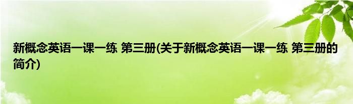 本文关于新概念英语一课一练 第三册的简介就讲解完毕,希望对大家有所帮助。