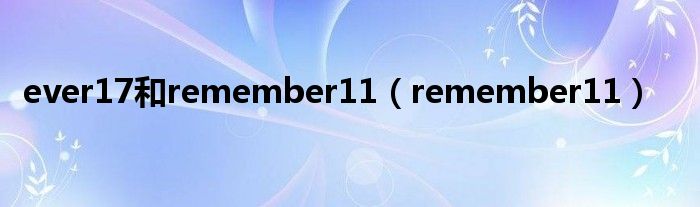大家好,精选小编来为大家解答以上问题。ever17和remember11,remember11很多人还不知道,现在让我们一起来看看吧!