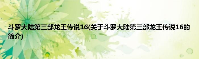 本文关于斗罗大陆第三部龙王传说16的简介就讲解完毕,希望对大家有所帮助。