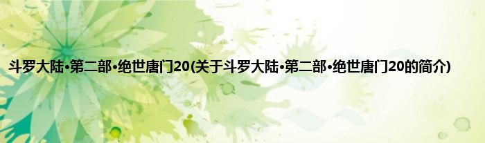 本文关于斗罗大陆·第二部·绝世唐门20的简介就讲解完毕,希望对大家有所帮助。