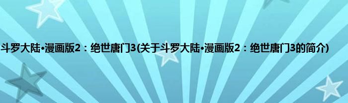 本文关于斗罗大陆·漫画版2:绝世唐门3的简介就讲解完毕,希望对大家有所帮助。