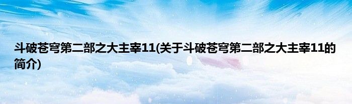 斗破苍穹第二部之大主宰11(关于斗破苍穹第二部之大主宰11的简介)