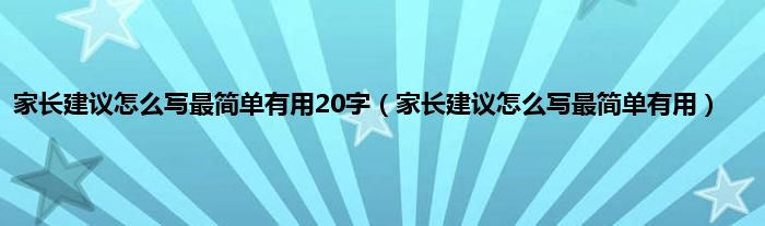 大家好,精选小编来为大家解答以上问题。家长建议怎么写最简单有用20字,家长建议怎么写最简单有用很多人还不知道,现在让我们一起来看看吧!