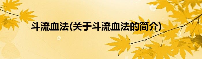 大家好,斗流血法,关于斗流血法的简介很多人还不知道,现在让我们一起来看看吧!