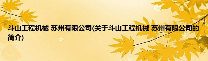 斗山工程机械 苏州有限公司(关于斗山工程机械 苏州有限公司的简介)