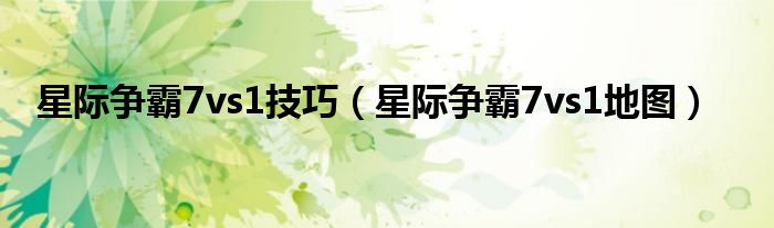 大家好,精选小编来为大家解答以上问题。星际争霸7vs1技巧,星际争霸7vs1地图很多人还不知道,现在让我们一起来看看吧!