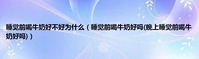 大家好,小科来为大家解答以上问题。睡觉前喝牛奶好不好为什么,睡觉前喝牛奶好吗(晚上睡觉前喝牛奶好吗)很多人还不知道,现在让我们一起来看看吧!