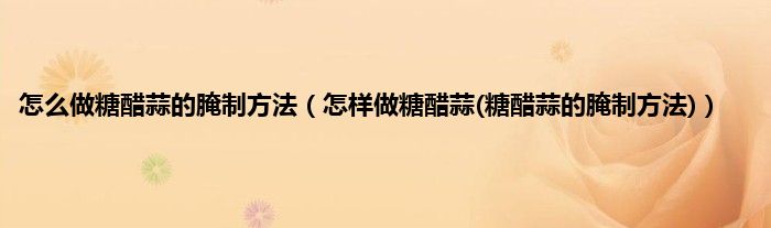 大家好,小科来为大家解答以上问题。怎么做糖醋蒜的腌制方法,怎样做糖醋蒜(糖醋蒜的腌制方法)很多人还不知道,现在让我们一起来看看吧!