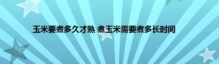 煮玉米需要多长时间?玉米一般要煮多久?如何辨别玉米是否熟了?以上是边肖为大家整理的一些相关内容,希望能对大家有所帮助。