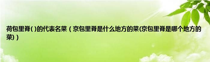 大家好,小科来为大家解答以上问题。荷包里脊( )的代表名菜,京包里脊是什么地方的菜(京包里脊是哪个地方的菜)很多人还不知道,现在让我们一起来看看吧!