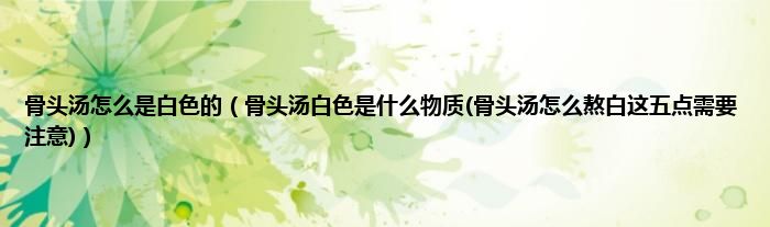 大家好,小科来为大家解答以上问题。骨头汤怎么是白色的,骨头汤白色是什么物质(骨头汤怎么熬白这五点需要注意)很多人还不知道,现在让我们一起来看看吧!