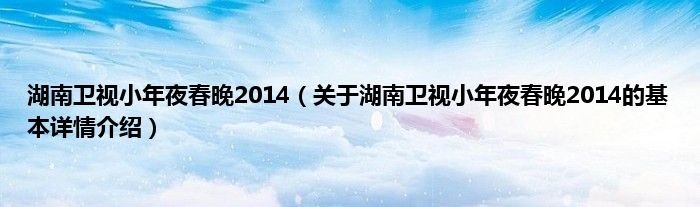 本文关于湖南卫视小年夜春晚2014的基本详情介绍就讲解完毕,希望对大家有所帮助。