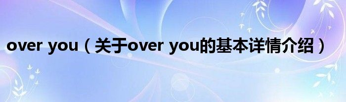 本文关于over you的基本详情介绍就讲解完毕,希望对大家有所帮助。