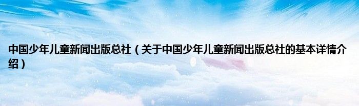 本文关于中国少年儿童新闻出版总社的基本详情介绍就讲解完毕,希望对大家有所帮助。