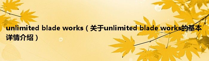 本文关于unlimited blade works的基本详情介绍就讲解完毕,希望对大家有所帮助。