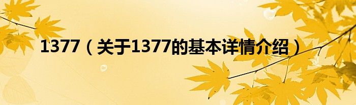 本文关于1377的基本详情介绍就讲解完毕,希望对大家有所帮助。