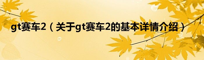 本文关于gt赛车2的基本详情介绍就讲解完毕,希望对大家有所帮助。