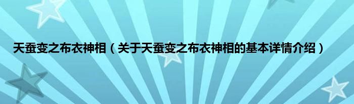 本文关于天蚕变之布衣神相的基本详情介绍就讲解完毕,希望对大家有所帮助。