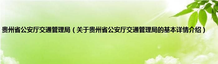 本文关于贵州省公安厅交通管理局的基本详情介绍就讲解完毕,希望对大家有所帮助。