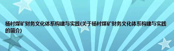 本文关于杨村煤矿财务文化体系构建与实践的简介就讲解完毕,希望对大家有所帮助。