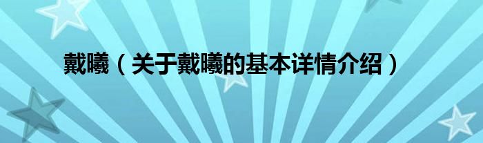本文关于戴曦的基本详情介绍就讲解完毕,希望对大家有所帮助。