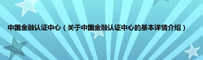 本文关于中国金融认证中心的基本详情介绍就讲解完毕,希望对大家有所帮助。