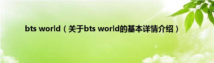 本文关于bts world的基本详情介绍就讲解完毕,希望对大家有所帮助。