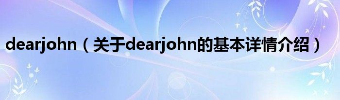 本文关于dearjohn的基本详情介绍就讲解完毕,希望对大家有所帮助。
