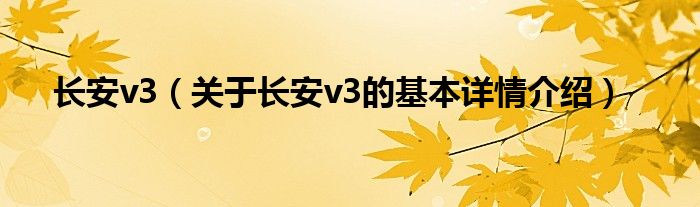 本文关于长安v3的基本详情介绍就讲解完毕,希望对大家有所帮助。