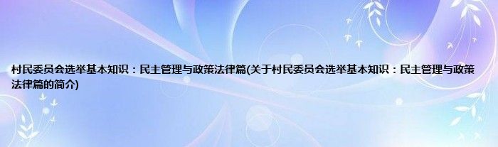 本文关于村民委员会选举基本知识:民主管理与政策法律篇的简介就讲解完毕,希望对大家有所帮助。
