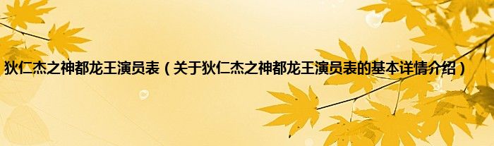 本文关于狄仁杰之神都龙王演员表的基本详情介绍就讲解完毕,希望对大家有所帮助。