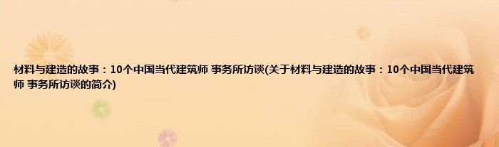 材料与建造的故事:10个中国当代建筑师 事务所访谈(关于材料与建造的故事:10个中国当代建筑师 事务所访谈的简介)