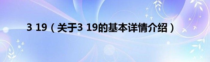 本文关于3 19的基本详情介绍就讲解完毕,希望对大家有所帮助。