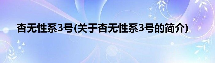 大家好,杏无性系3号,关于杏无性系3号的简介很多人还不知道,现在让我们一起来看看吧!