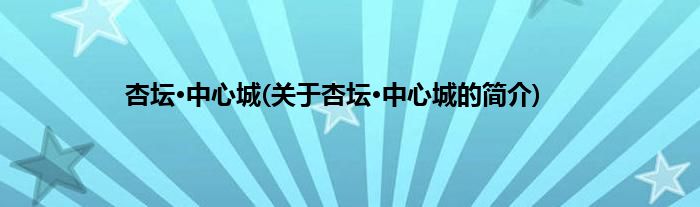 本文关于杏坛·中心城的简介就讲解完毕,希望对大家有所帮助。