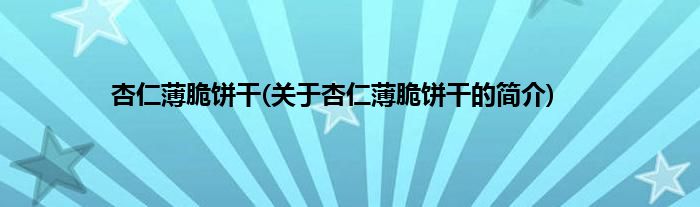 本文关于杏仁薄脆饼干的简介就讲解完毕,希望对大家有所帮助。