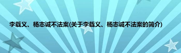 本文关于李载义、杨志诚不法案的简介就讲解完毕,希望对大家有所帮助。