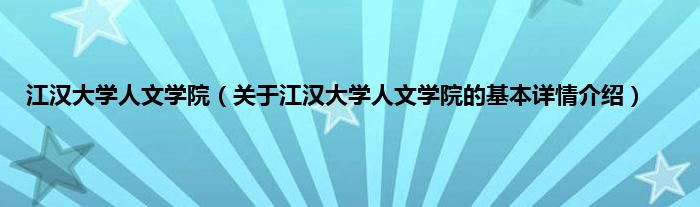 本文关于江汉大学人文学院的基本详情介绍就讲解完毕,希望对大家有所帮助。