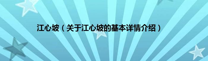 大家好我是小蝌蚪,江心坡,关于江心坡的基本详情介绍很多人还不知道,那么现在让我们一起来看看吧!