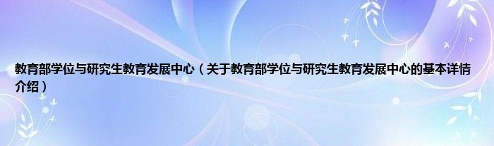 本文关于教育部学位与研究生教育发展中心的基本详情介绍就讲解完毕,希望对大家有所帮助。
