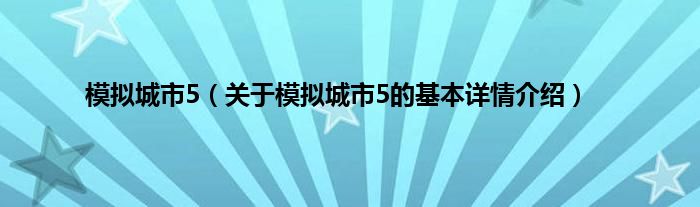 本文关于模拟城市5的基本详情介绍就讲解完毕,希望对大家有所帮助。