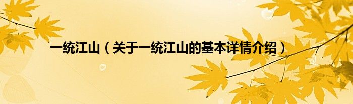 本文关于一统江山的基本详情介绍就讲解完毕,希望对大家有所帮助。